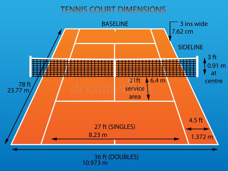 Tennis court dimensions provides the official regulation tennis court measurements. Includes helpful diagrams and recommendations for overall playing area size with adequate run off. The court must be divided across the center by a net suspended by a cord or a metal cable which has to pass over or be attached to 2 net posts at a height of 3 and a half feet. How tennis court lighting layout works? For indoor tennis matches, kids can use red sponge ball and.